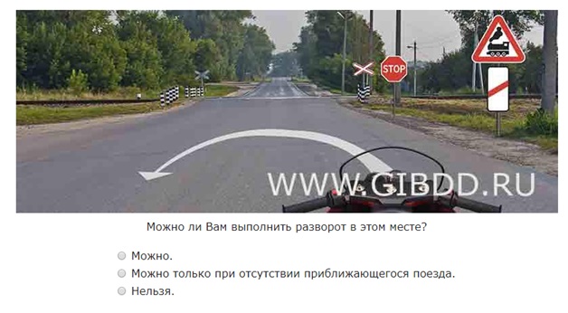 Таким образом, мы узнаем, что разворот запрещается на ж/д переезде, но не перед ним. А это значит, что вы можете развернуться, и правильный ответ 1 – «Можно».
