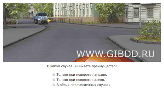 Таким образом, грузовик должен уступить вам дорогу, какое бы направление вы не избрали. Ответ – 3 «В обоих перечисленных случаях».