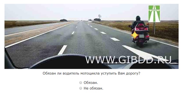 Таким образом, мотоциклист обязан вам уступить, и правильный ответ – 1.