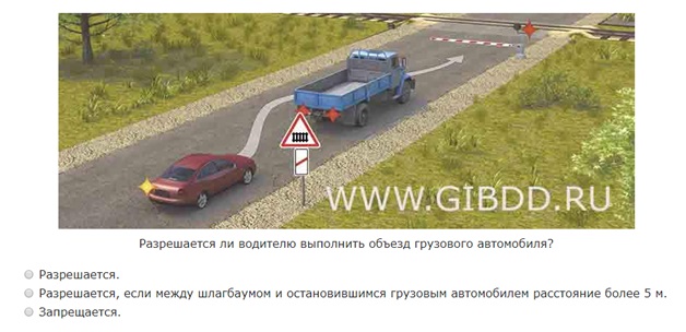 Грузовик стоит перед ж/д переездом, и объехать его вы не можете. Правильным ответом будет – 3.