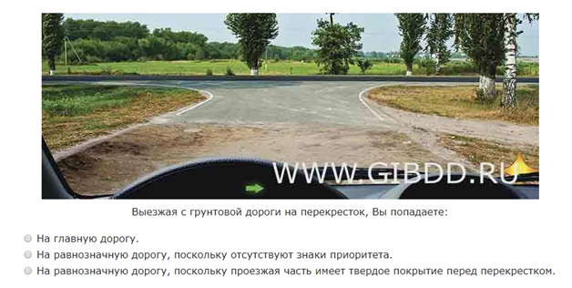 Если перед перекрестком есть участок грунтовой дороги с твердым покрытием – это лишь мера от грязи, которая может выноситься с грунта на асфальт, а никак не приравнивание ее к пересекаемой асфальтированной дороге. Правильным является ответ – 1.