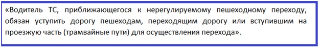Таким образом мы выяснили, что вы обязаны пропустить как пешехода, переходящего дорогу по нерегулируемому переходу, так и пешеходов справа, переходящих проезжую часть, на которую вы совершаете поворот на перекрестке.