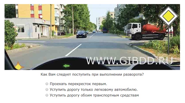 Знак 2.1 говорит вам о том, что вы осуществляете движение по главной дороге, как и легковое авто. Согласно правилу пункта 13.12, вы должны уступить ему дорогу, совершая разворот.