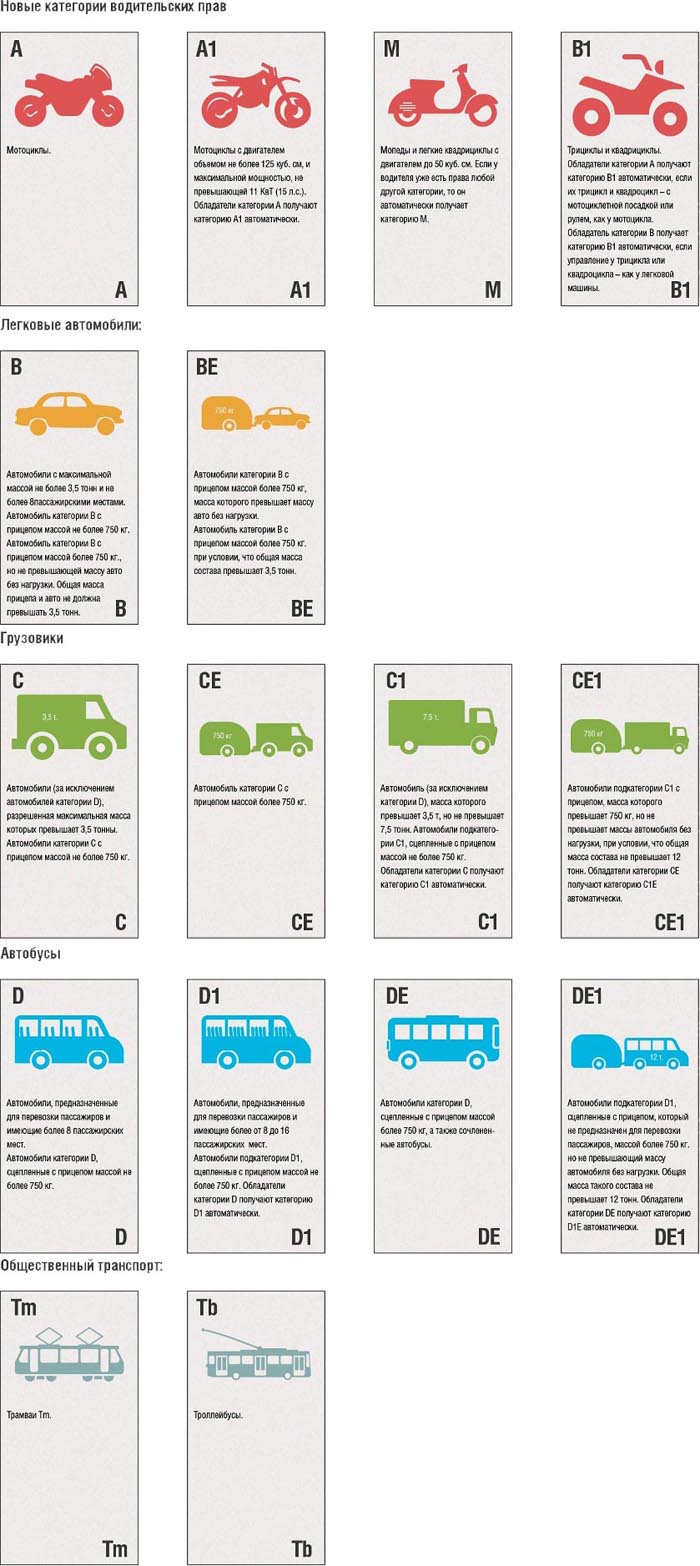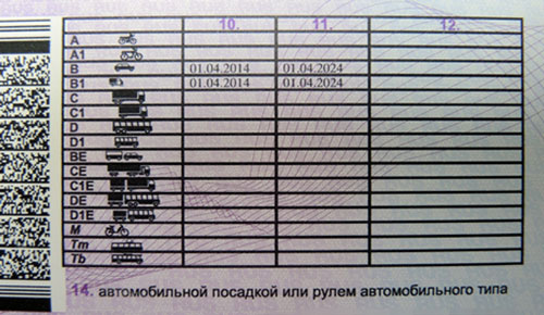 Все нововведения 2014 года обнаруживаются на оборотной стороне карточки: таблица с категориями транспортных средств стала более подробной и дробленной.