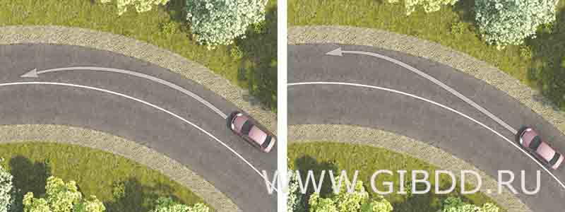 в пособии экзаменационных билетов на этот же вопрос другой ответ. там написано,что на правом рисунке изображена правильная траектория. в комментарии описано, что указанная траектория позволяет уменьшить вероятность неконтролируемого смещения ТС к полосе, предназначенной для встречного движения, под действием центробежной силы. Так какой ответ все таки правильный?