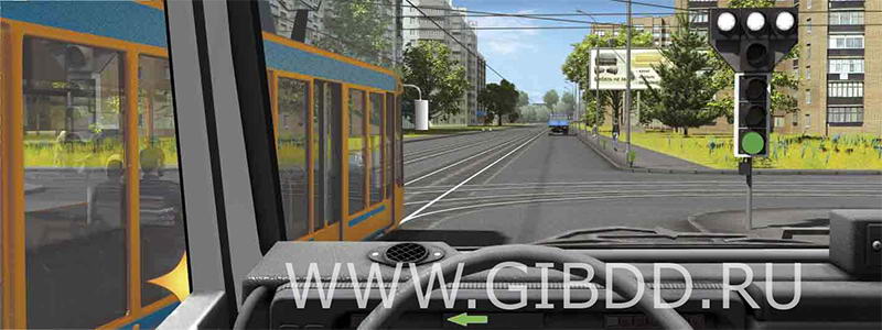 Уступите дорогу трамваю, выполнив поворот с проезжей части.