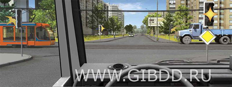 Билет №11, вопрос №16В каких случаях Вы можете, управляя грузовым автомобилем с разрешенной максимальной массой более 3,5 т, проехать прямо?