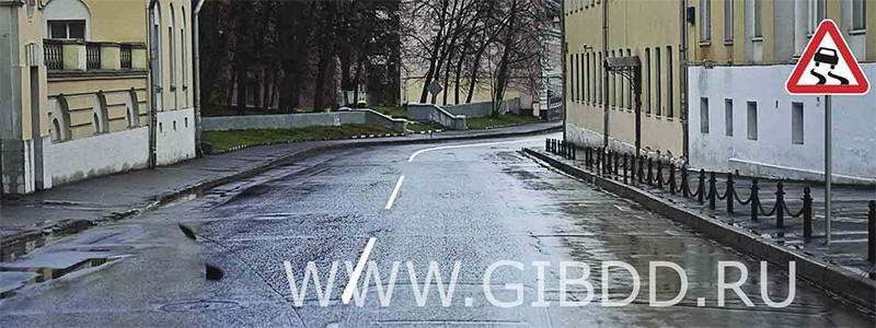 Непосредственно перед началом скользкого участка.