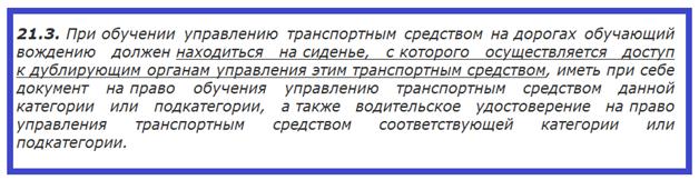 Из этого следует, что место автоинструктора – переднее сиденье, с которого есть доступ к дублирующим педалям учебного авто.
